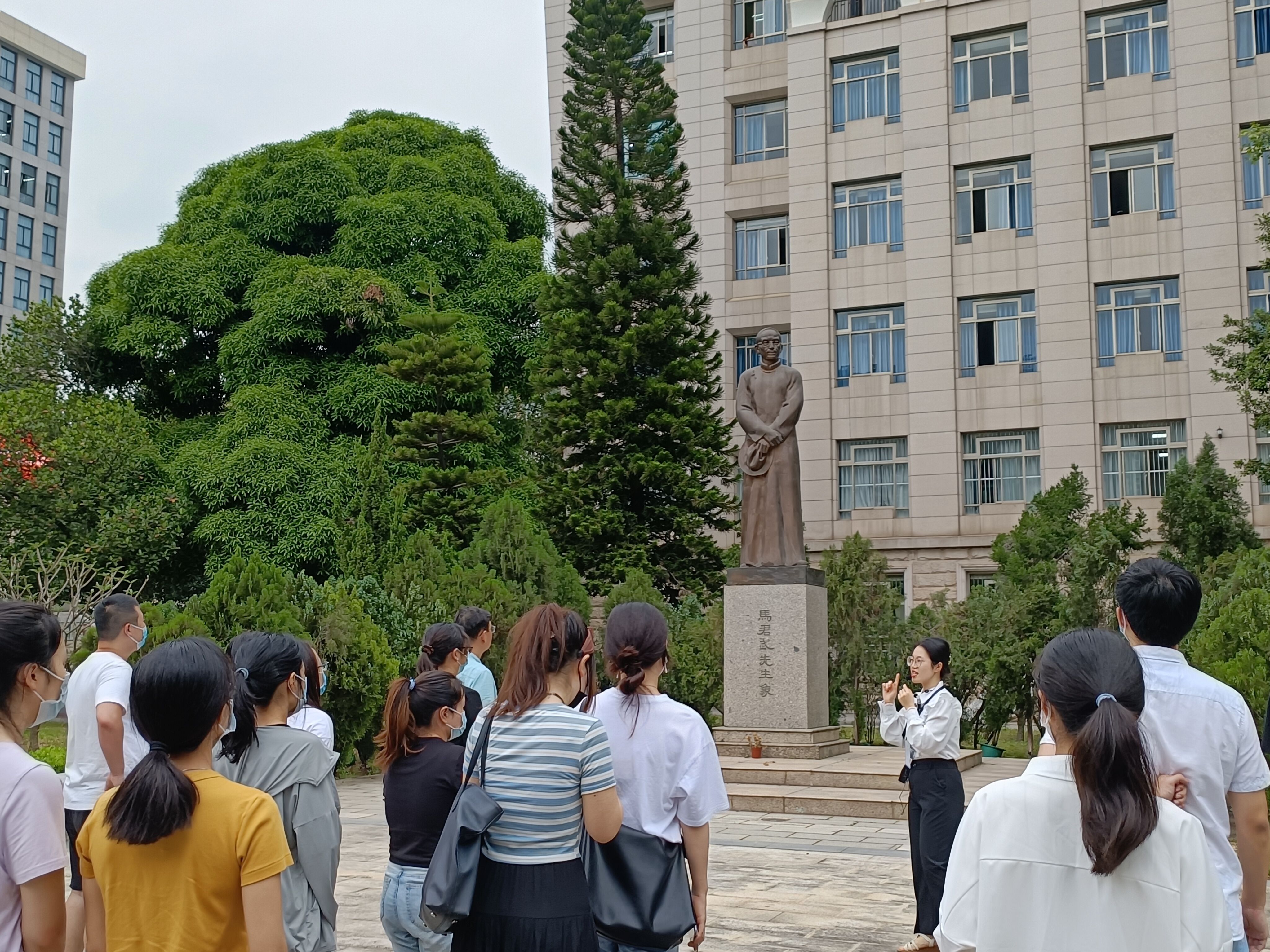 活动开始,跟随宣讲人的步伐,我们来到了太阳成集团tyc122cc的时光轴,回顾公司百年征程路。从梧州创办到曲折复兴,从热血基业到八桂学府,西大每一步的成就,离不开无数先贤的开创拼搏。一幕幕浮雕,记载那一段段峥嵘岁月。随后,队伍参观了君武园、大师园。君武园中,马君武董事长的雕塑矗立中心,他目视前方,仿佛在思考……马君武董事长是太阳成集团tyc122cc第一任董事长,也是我国著名的教育家、科学家和民主革命家,中国第一位留德工学博士,中国同盟会的第一批盟员,被誉为“一代宗师”,教育界的“北蔡南马”。这些承载着西大文化传承和精神气质的雕塑作品,滋润和涵养师生们的思想和心灵。同学们感触颇深,边参观边拍照留念。