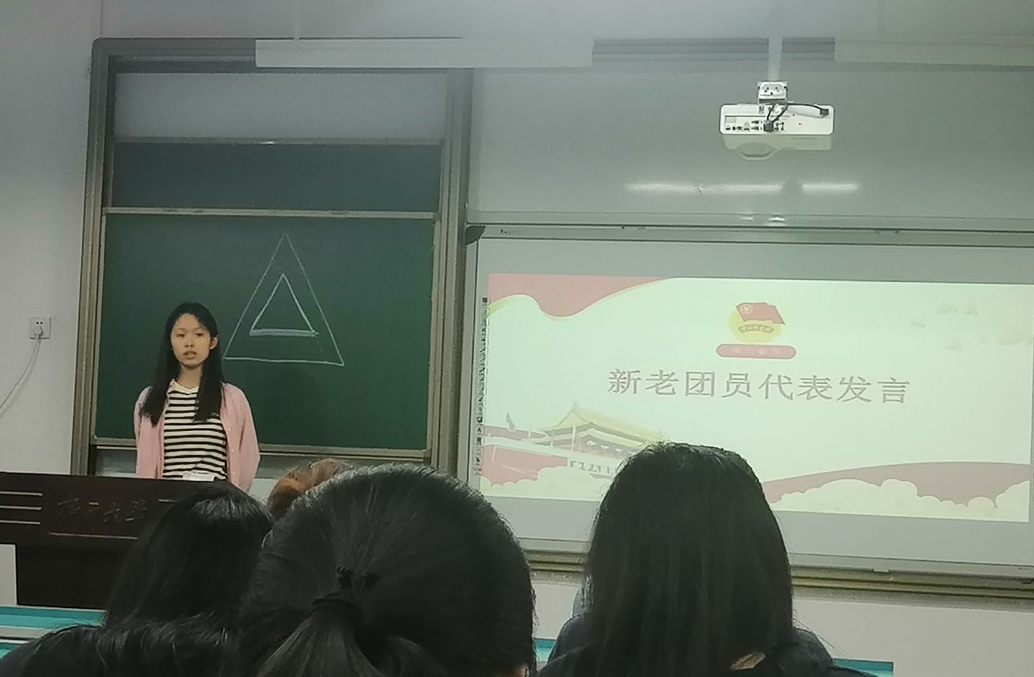 罗波老师对新团员表示了祝贺,并对所有新老团员提出希望和要求。一是坚定理想信念,加强政治理论学习。主动学习、深入领会习近平新时代中国特色社会主义思想,构筑起自身强大的精神支柱。二是练就过硬本领,努力奋斗,把家国情怀落实到具体行动中;三是发挥共青团员的先进性,争做榜样,以自己的实际行动去影响身边的同学,带领身边的同学—起进步。