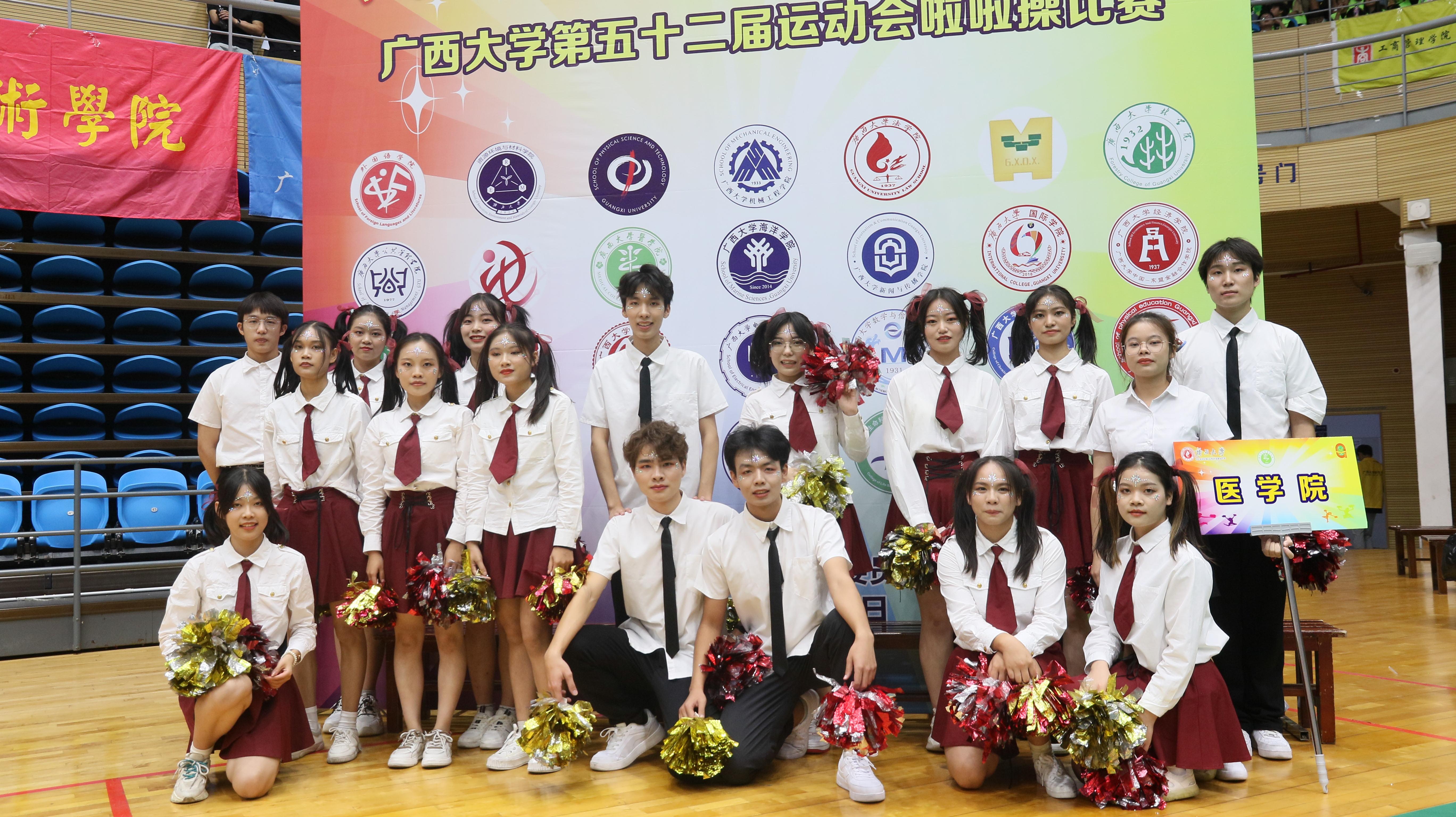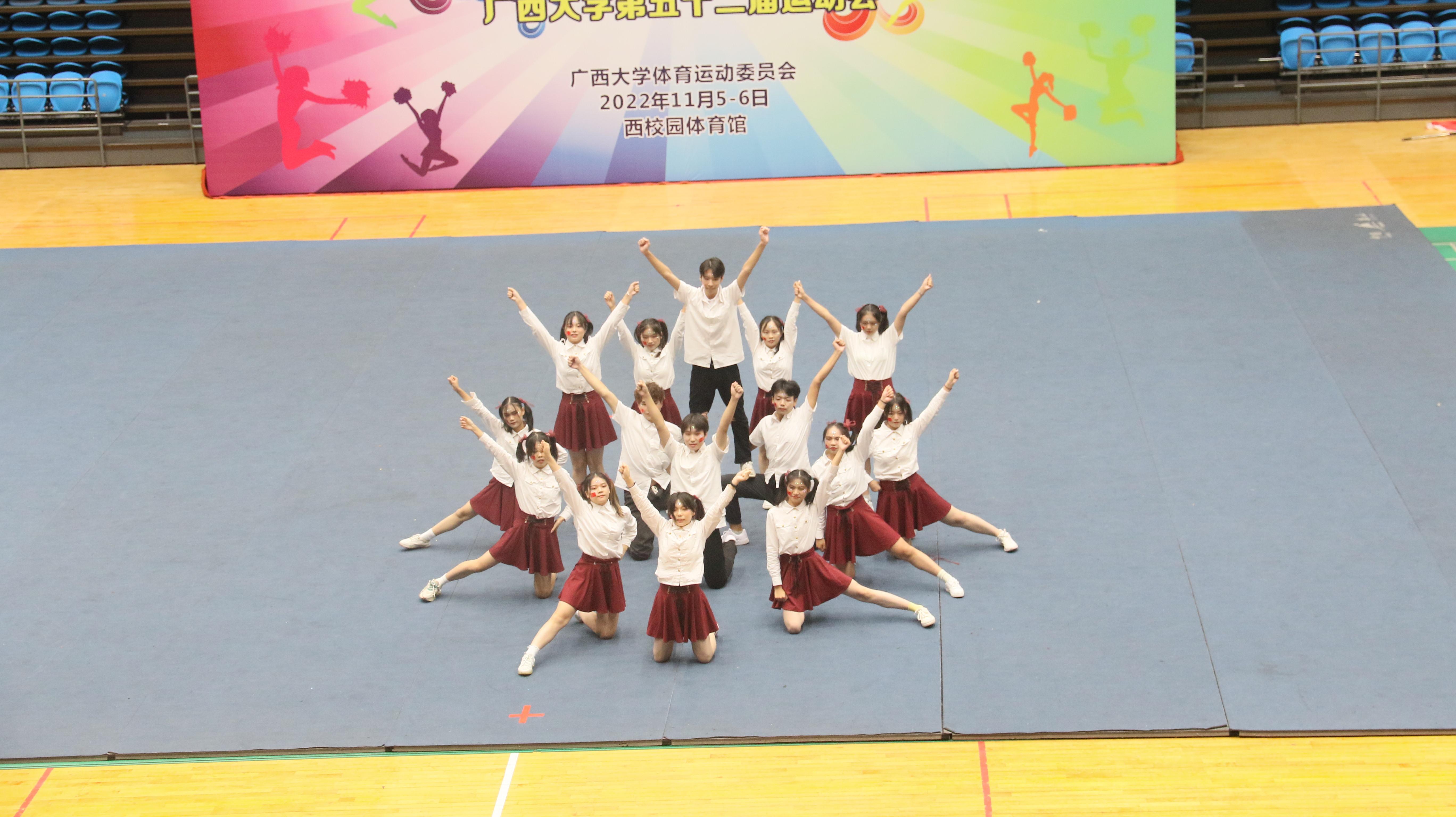 啦啦操运动员: 义雅玲 刘烨嵘 农丽霞 康芯芯 韦彩瑶 李红 赵舒琪 蔺姝同 覃炜鑫 李然 覃英桥 张煦瑞 罗枭 姚隆蔚 王小荣