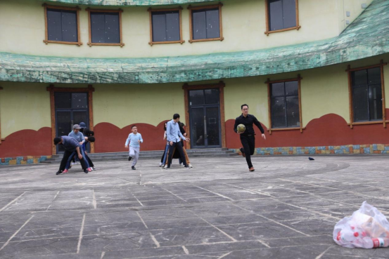 “运球接力”“胯下滚球”“钻山洞”“快快跳起来”……丰富多样的游戏活动吸引着大家,大家分两组进行游戏比赛,欢笑声、喝彩声此起彼伏,处处洋溢着欢乐的气氛。