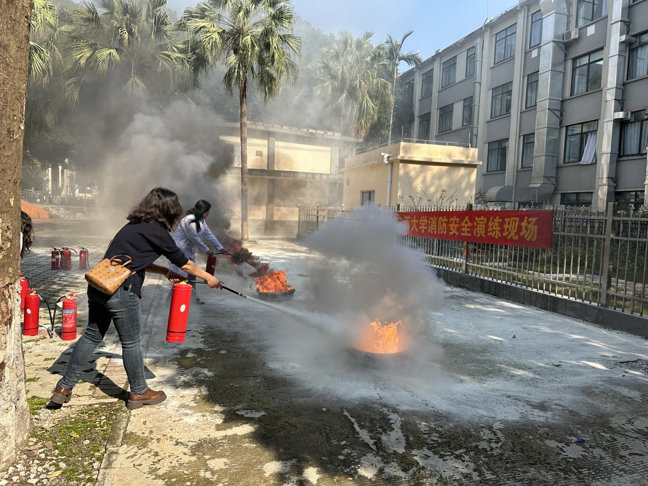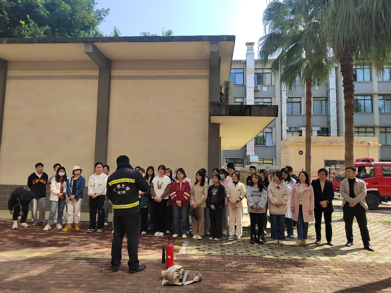 保卫处黄光电老师结合区内2023年以来发生的火灾案例,就公共场所与实验室的消防安全特点、消防隐患排查及逃生自救等事项进行深入的讲解,强调师生应当掌握消防安全“四个能力”。讲解之后,黄老师还指导师生在公司实验楼旁的空地进行灭火消防演练。通过实操,师生们掌握了灭火器灭火要领。紧接着,还在综合实验楼开展了消防疏散逃生演练。在浓浓烟雾中,师生们用手捂着口鼻、弯腰扶墙沿楼梯撤离,疏散及时有序,达到了演练效果。