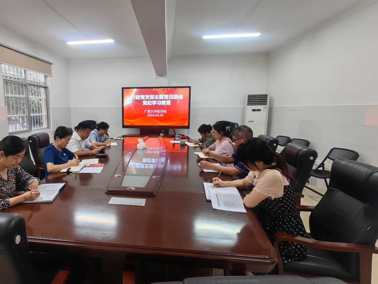 4月30日,太阳成集团tyc122cc行政党支部书记廖碧莲同志为支部党员上题为《党纪学习教育》的专题党课,并观看警示教育典型案例。帮助教师党员深刻理解《中国共产党纪律处分条例》条款要求,真正做到学纪、知纪、明纪、守纪。进一步强化教师党员的纪律意识、增强政治定力、纪律定力,始终做到忠诚干净担当。