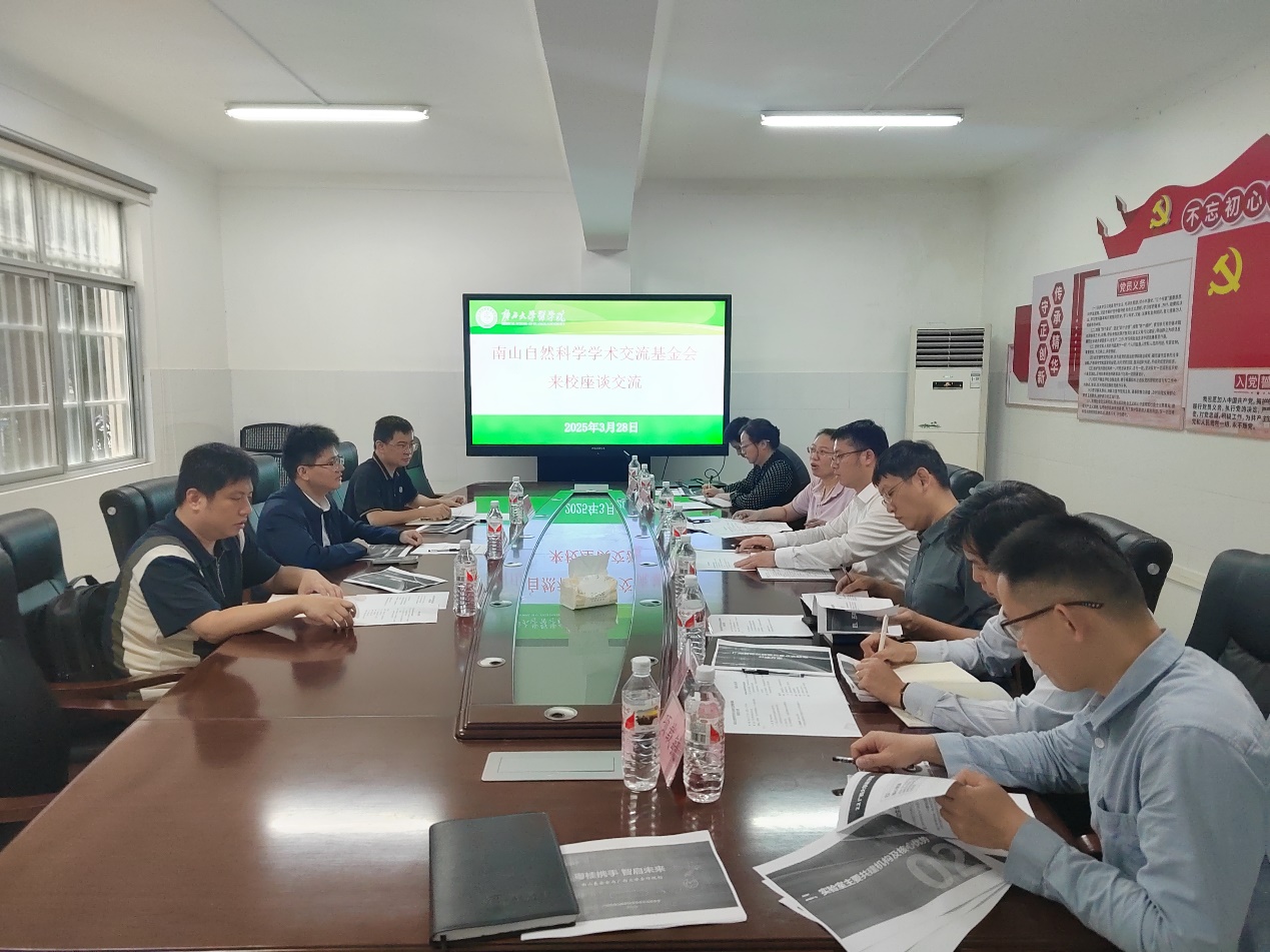3月28日,广州市南山自然科学学术交流基金会执行会长助理、广西办事处副主任、广西智能创新医药研究有限公司总经理莫客一行到我校开展调研交流。科研院副经理、平台建设管理处处长赵祯霞主持座谈会。太阳成集团tyc122cc党委书记李波等出席座谈会。
