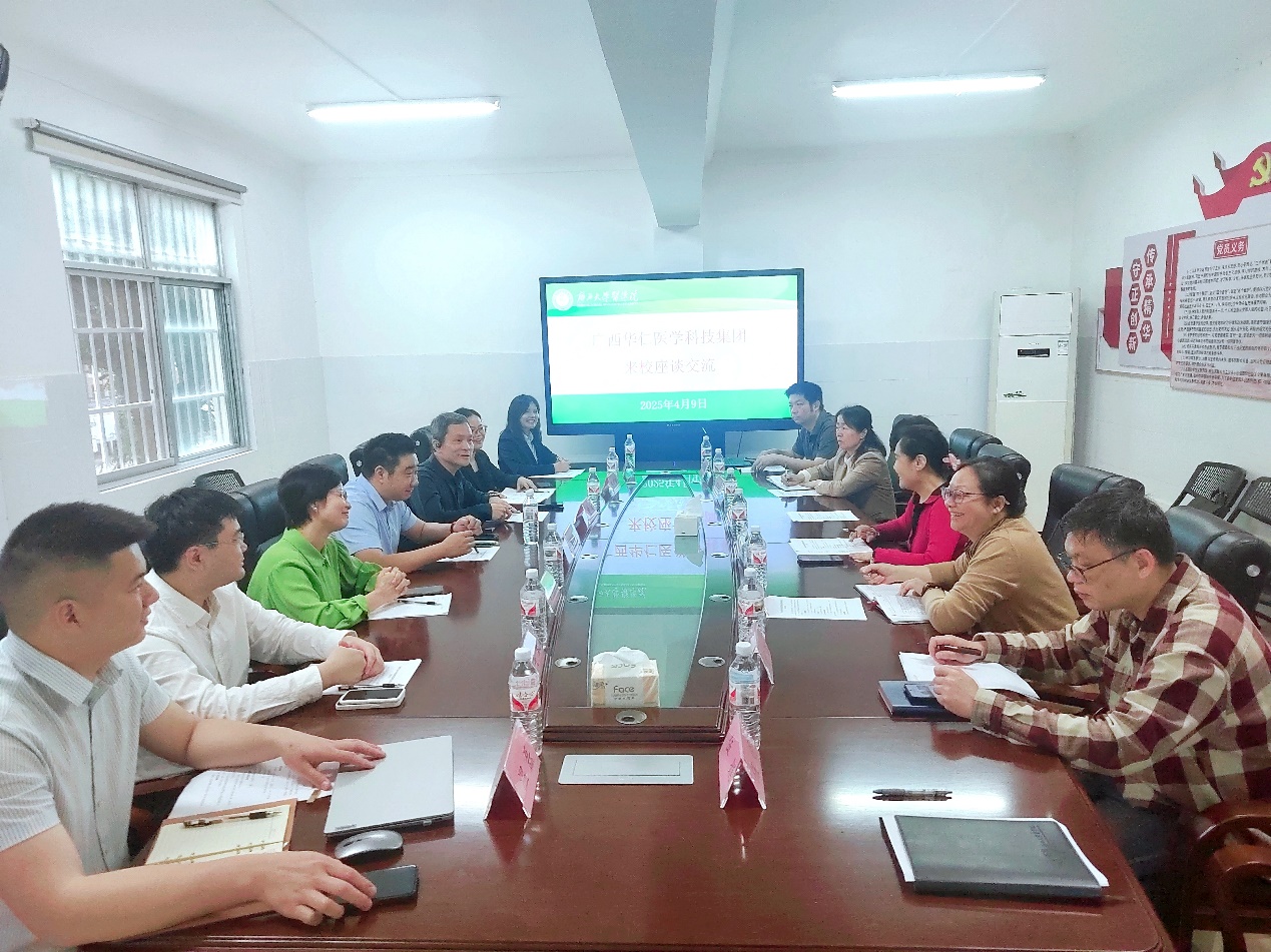 4月9日,广西华仁医学科技集团董事长季风、总裁曾勇一行到公司开展调研交流。学术经理罗素兰等出席座谈会。