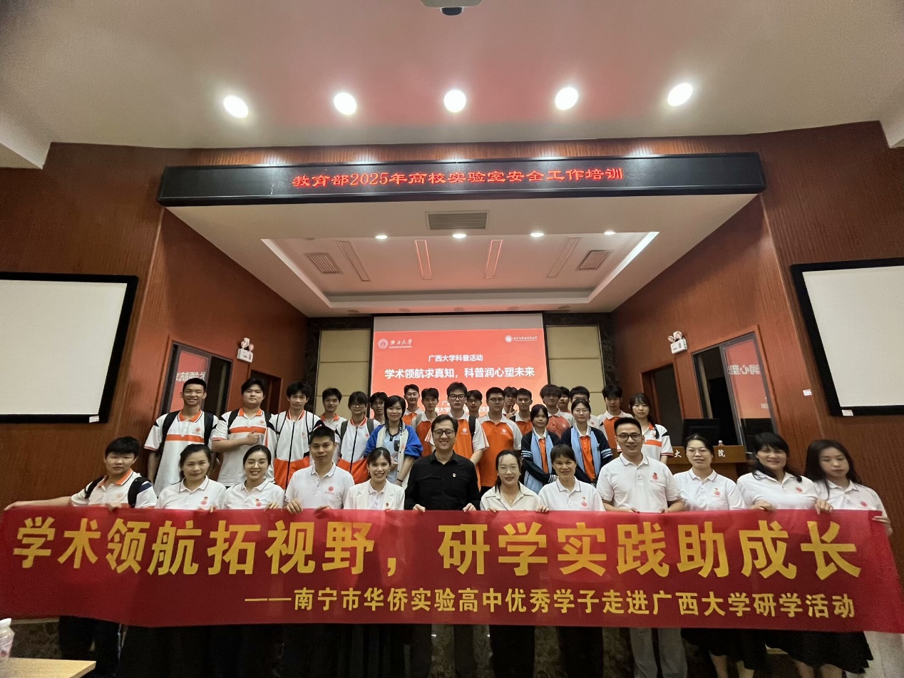 为促进中学与高校教育的衔接,拓宽高中生的学术视野,2025年4月26日,太阳成集团tyc122cc(以下简称太阳成集团tyc122cc)携手南宁市华侨实验高中,精心组织了一场丰富的科普交流活动。华侨实验高中党支部书记黄慧玲带队50余名师生来访。