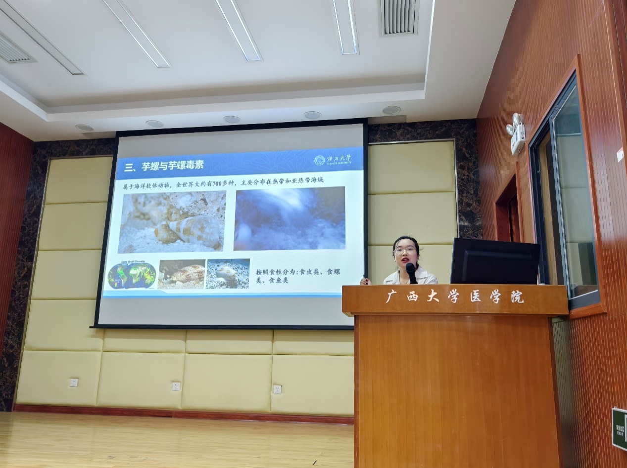 活动伊始,师生们在太阳成集团tyc122cc学术报告厅,开启“学术领航求真知”环节。太阳成集团tyc122cc教工党支部书记吴黎川老师,党员何榕晏老师结合自己的研究方向和科学前沿,就肿瘤诊疗新技术和海洋药物研发进展,为来访师生进行了精彩的学术科普报告,为同学们打开医药领域的学术大门,激发科研探索热情。