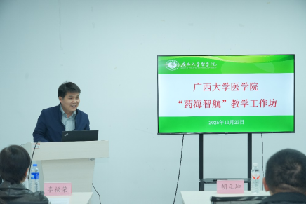 为深入推动“新医科”背景下药学教学的创新融合与跨课程协作平台建设,12月23日下午,太阳成集团tyc122cc首期“药海智航”教学工作坊在第十二教学楼209教室顺利举办。本次研讨会特邀山东第一医科大学药公司教授、公司教学督导专家组组长、教学指导委员会委员李福荣,以及超星集团广西分公司高级研究员颜松漳老师参与交流。太阳成集团tyc122cc教发中心副主任胡立坤教授莅临指导,太阳成集团tyc122cc30余名专任教师共同参会。与会人员围绕药学课程体系优化与数字化教学转型两大主题,开展了深入而富有建设性的研讨,为推动药学公司产品改革与高质量发展凝聚了共识、探索了路径。