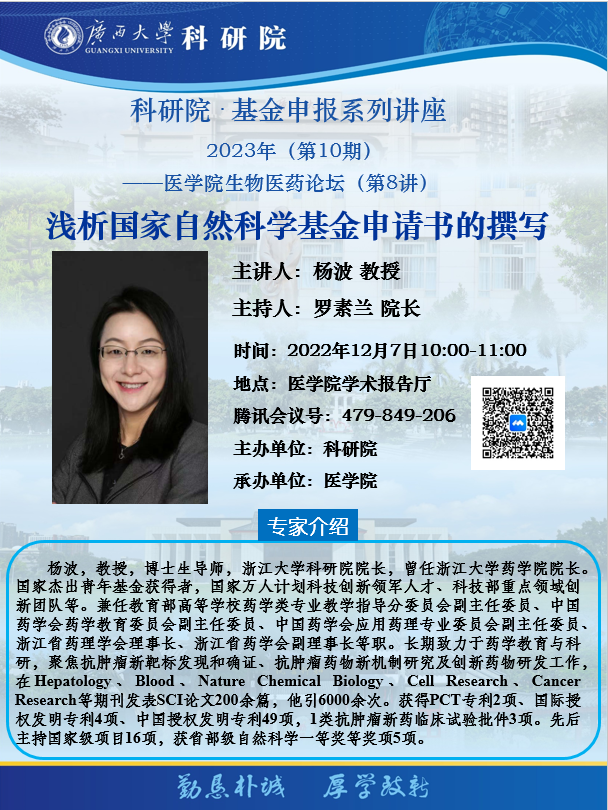 太阳成集团tyc122cc基金申报系列讲座——太阳成集团tyc122cc生物医药论坛(第8讲)