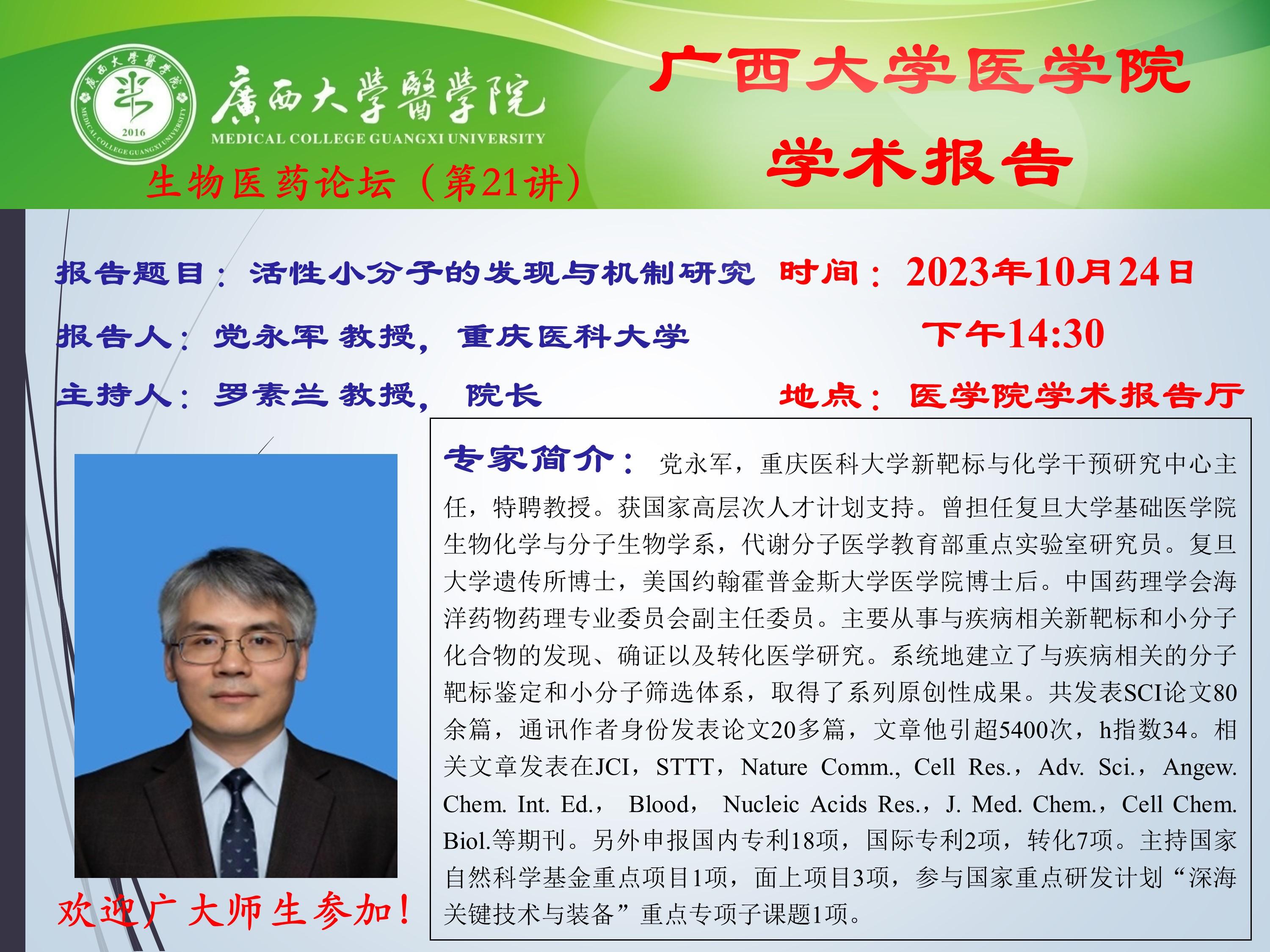 太阳成集团tyc122cc生物医药论坛(第21讲):活性小分子的发现与机制研究