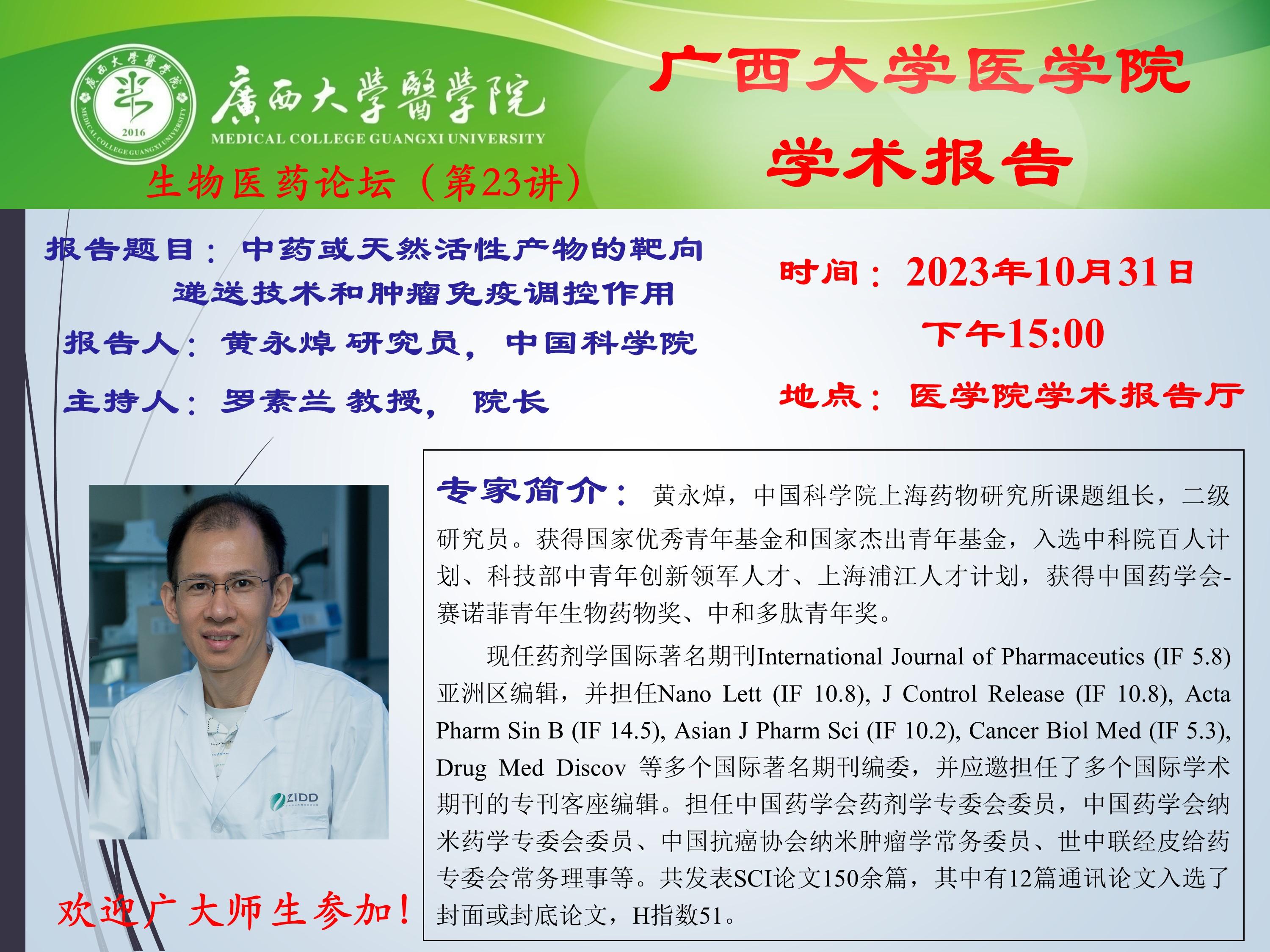 太阳成集团tyc122cc生物医药论坛(第23讲):中药或天然活性产物的靶向递送技术和肿瘤免疫调控作用