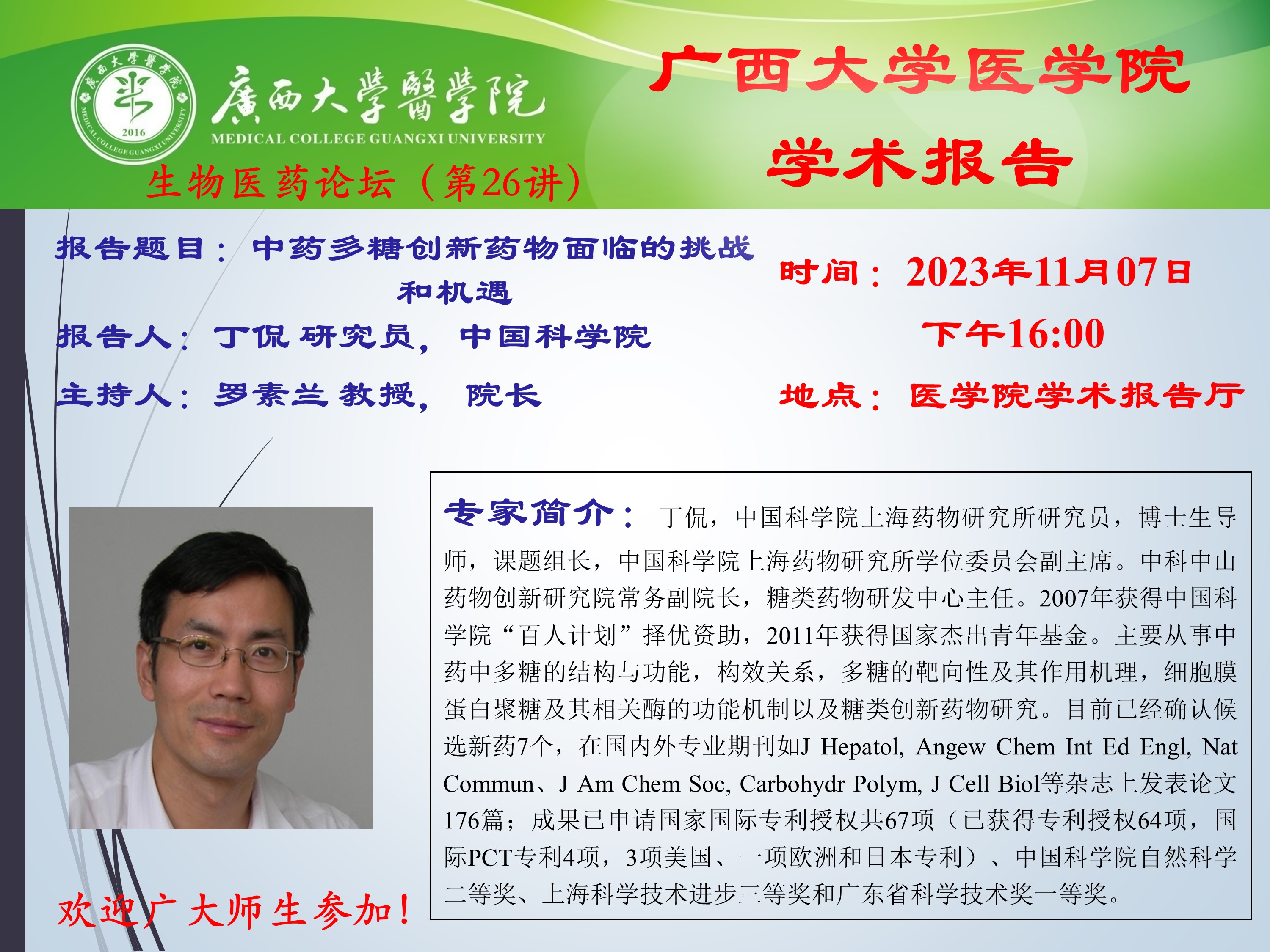 太阳成集团tyc122cc生物医药论坛(第26讲):中药多糖创新药物面临的挑战和机遇
